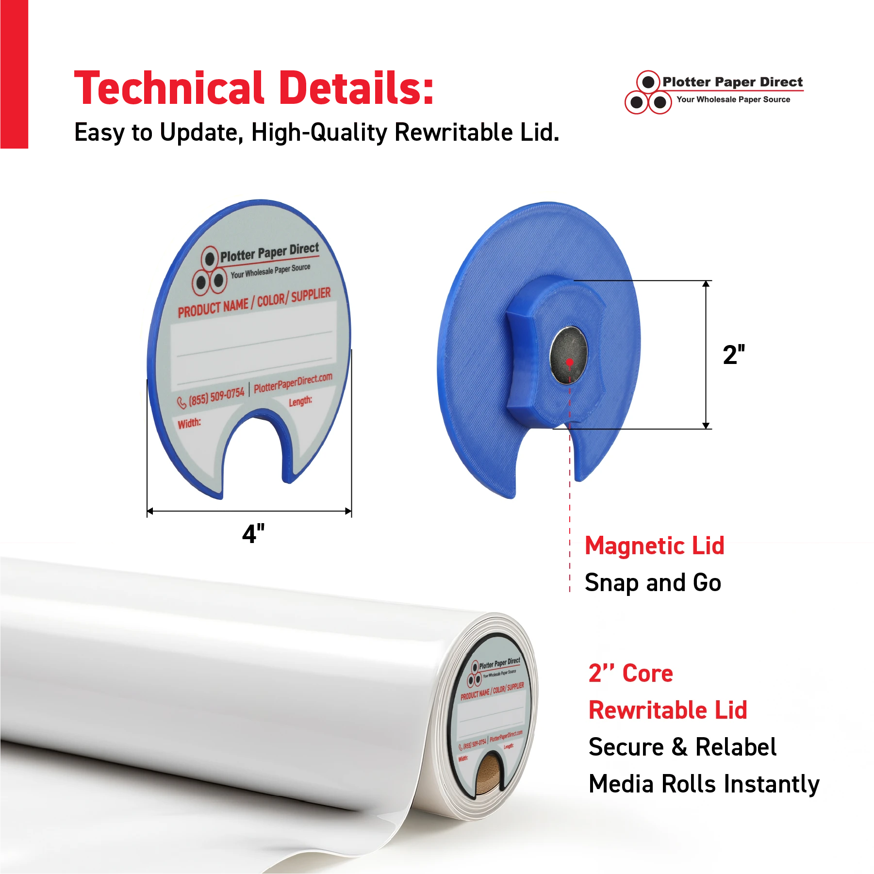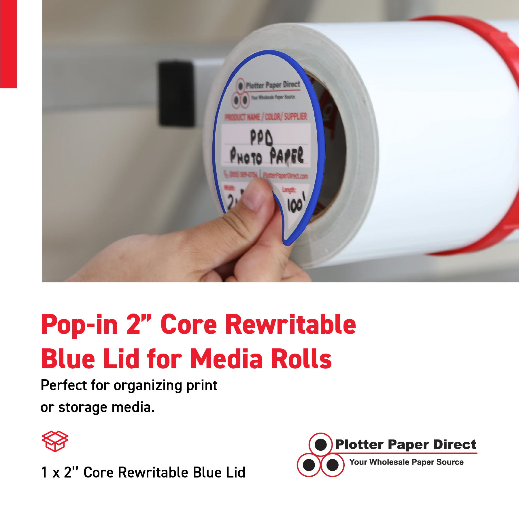 Secure and label your media rolls with this rewritable blue lid for 2" cores. Durable, reusable, and perfect for organizing print or storage media.