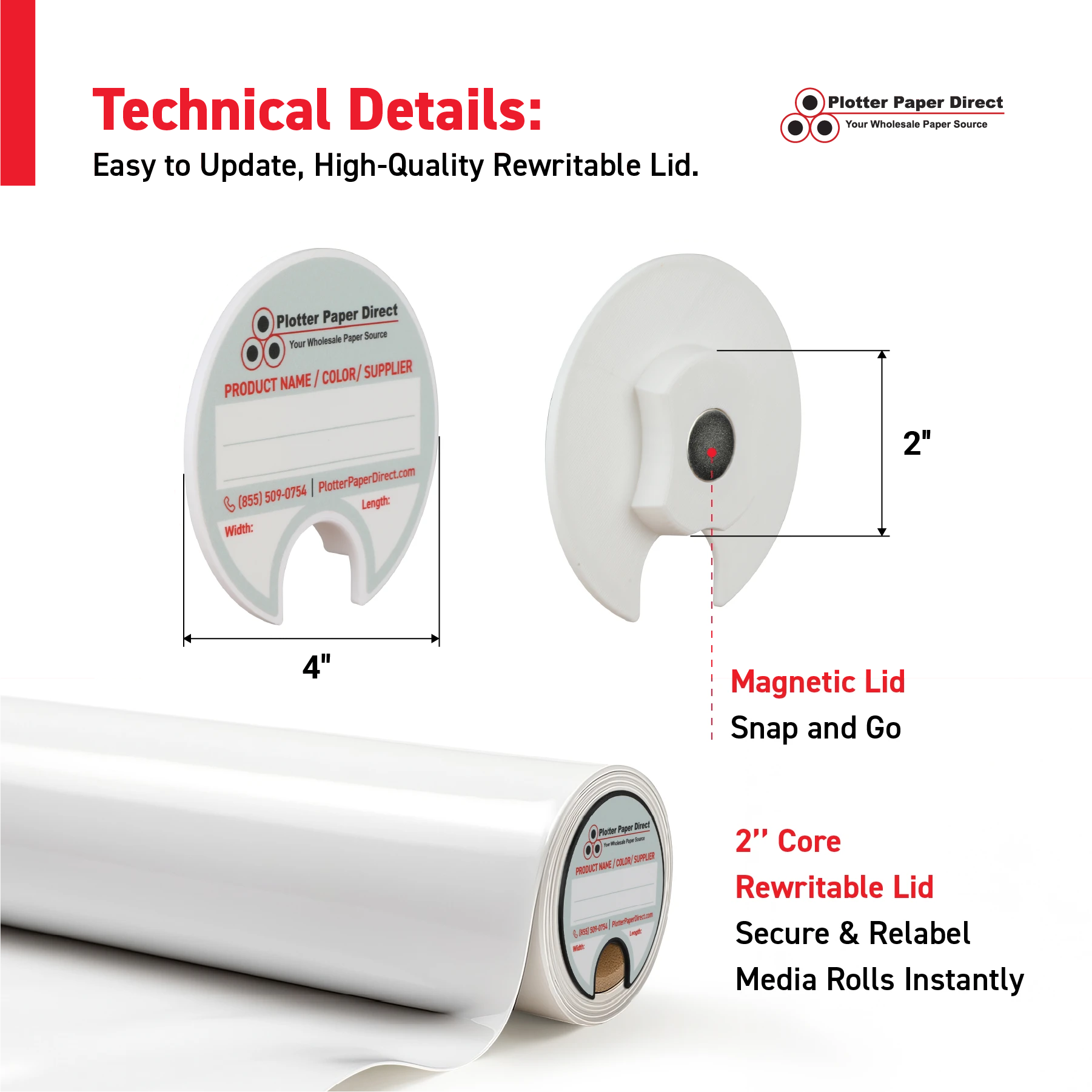 Secure and label your media rolls with this rewritable black lid for 2" cores. Durable, reusable, and perfect for organizing print or storage media.