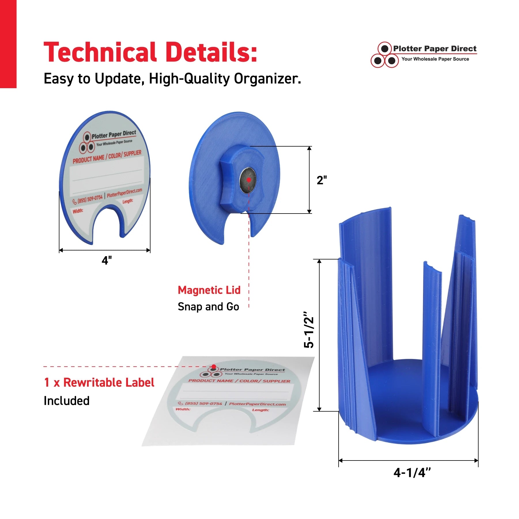 Kit of 10 Rewritable Blue Lids for 2" Core Media Rolls + 1 Blue Bench Organizer for 2" & 3" Cores – Durable Storage & Organization for Print Shops and Studios