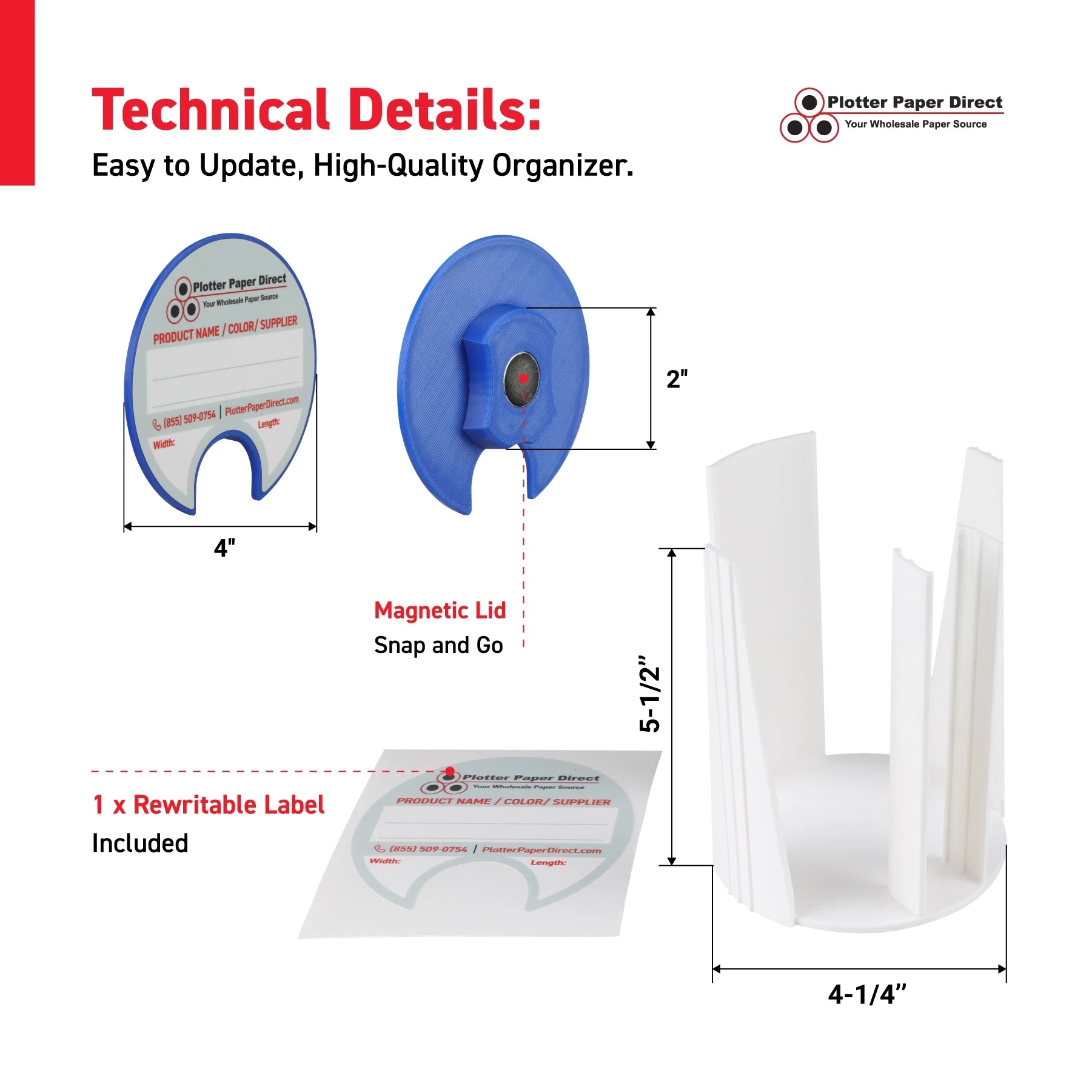 Kit of 10 Rewritable Blue Lids for 2" Core Media Rolls + 1 White Bench Organizer for 2" & 3" Cores – Durable Storage & Organization for Print Shops and Studios