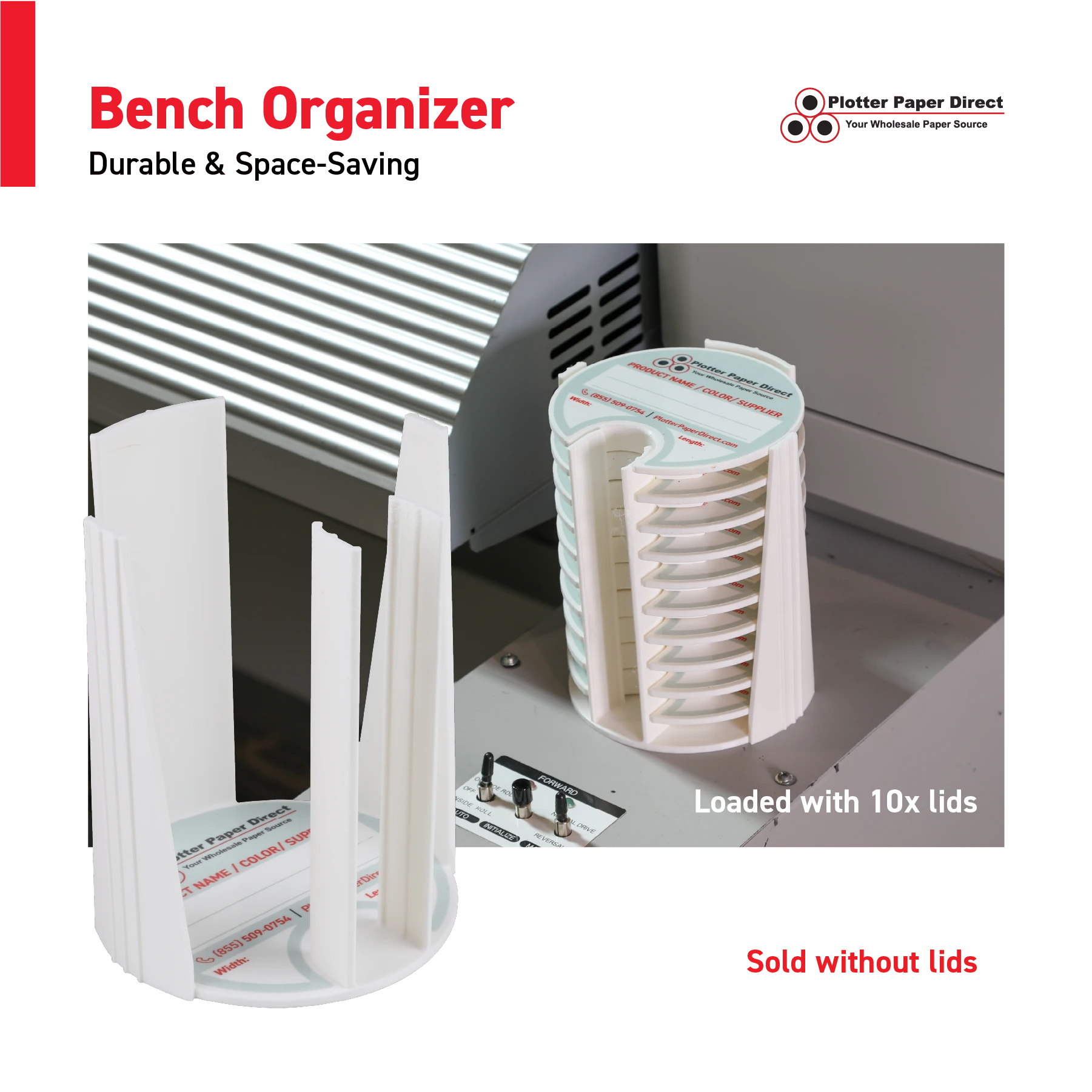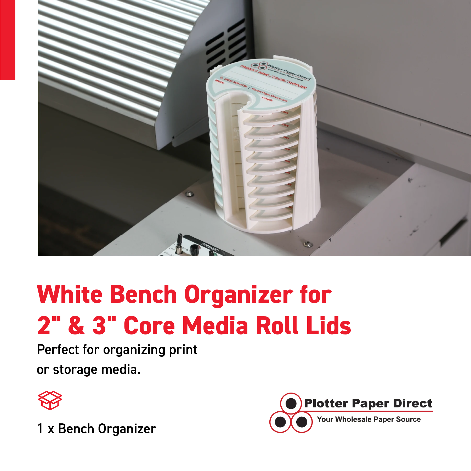 White Bench Organizer for 2" & 3" Core Media Roll Lids – Durable & Space-Saving