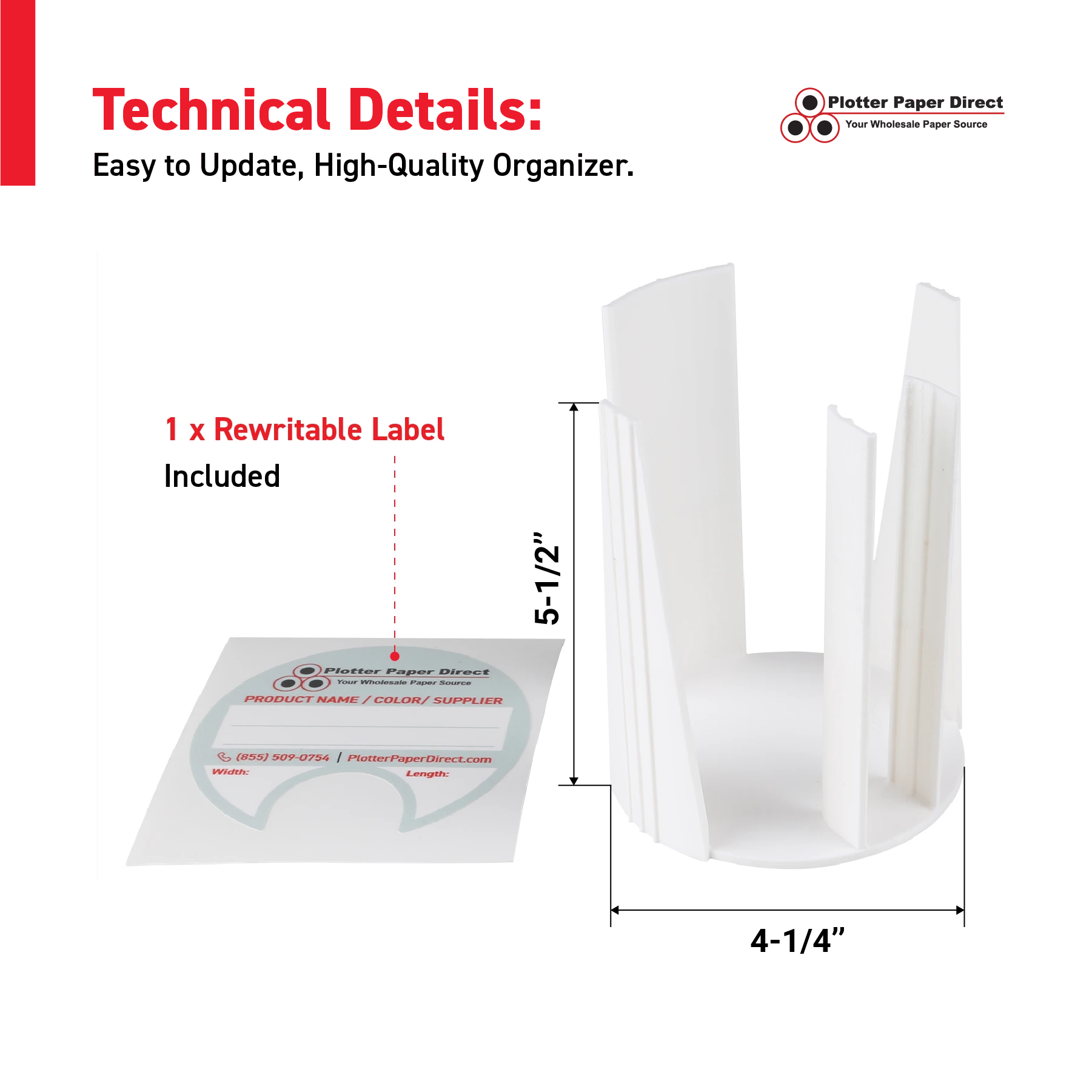 Organize 2" and 3" core media roll lids with this durable white bench organizer. Ideal for print shops and workstations to keep your space neat and efficient.