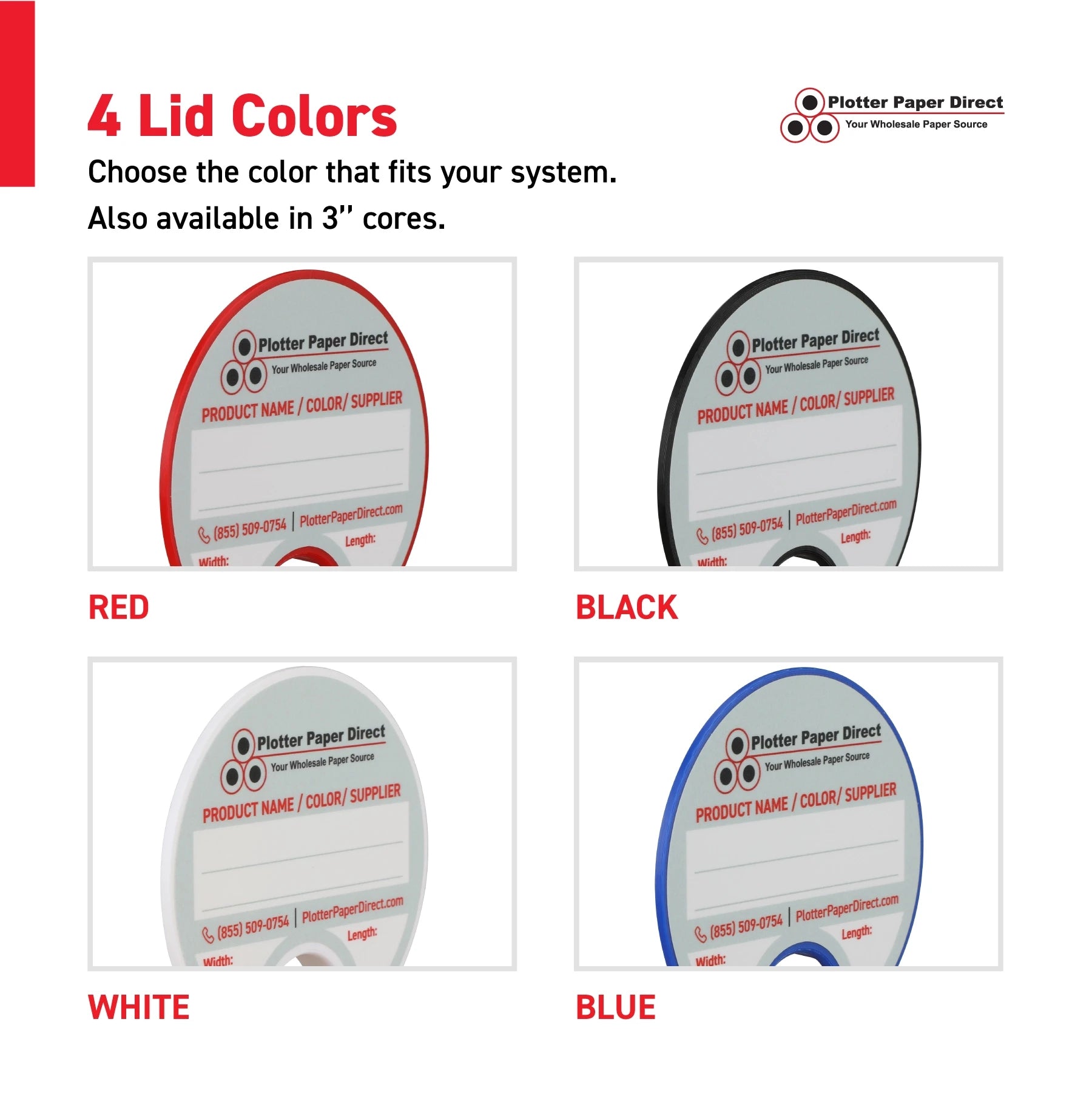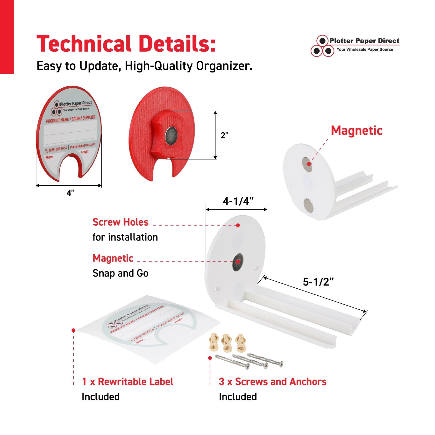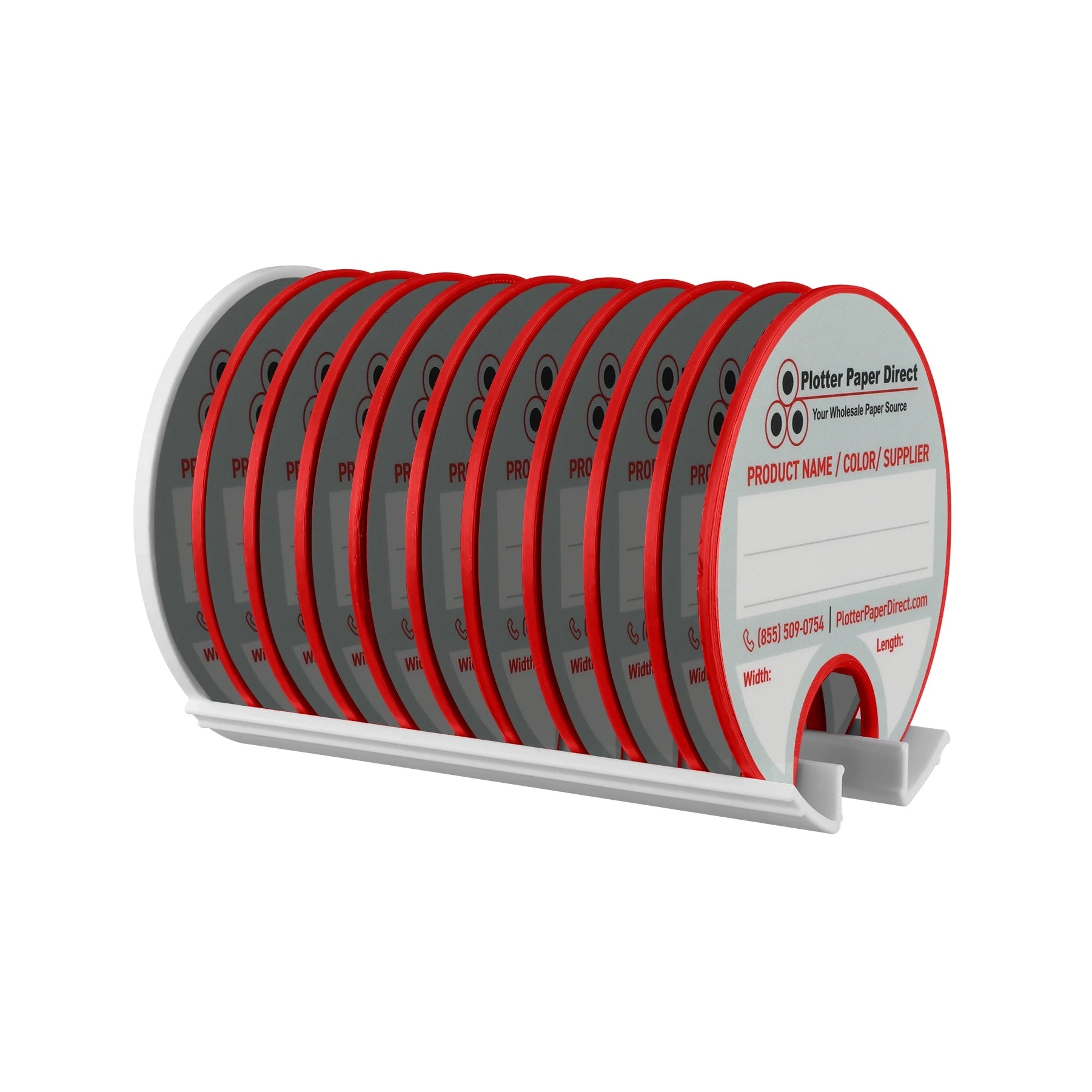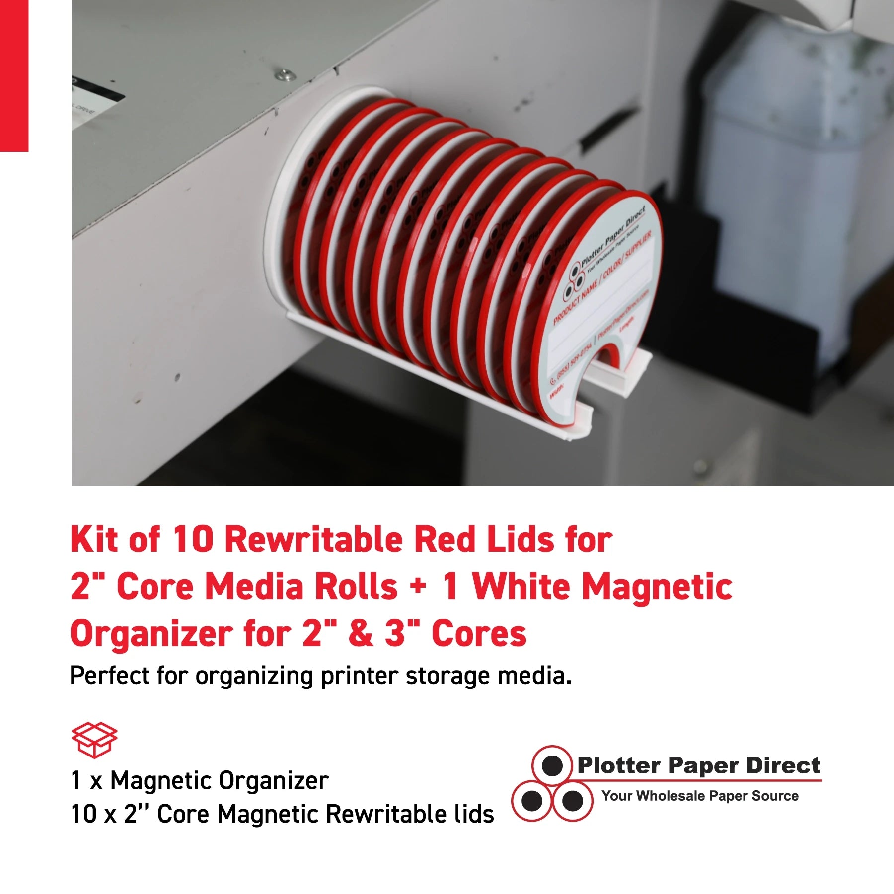 Kit of 10 Rewritable Red Lids for 22" Core Media Rolls + 1 White Magnetic Wall Organizer for 2" & 3" Cores – Durable Storage Solution for Print & Sign Shops