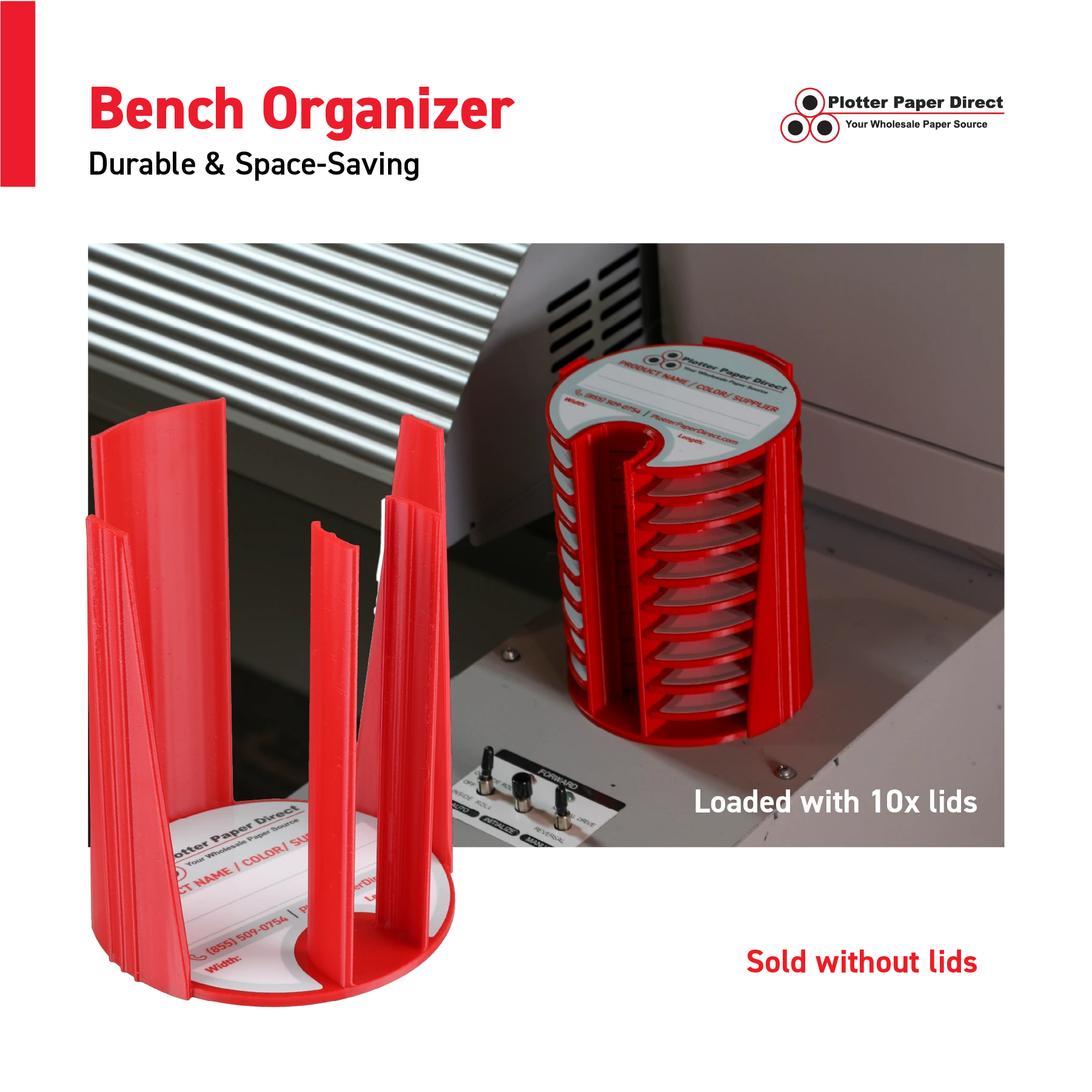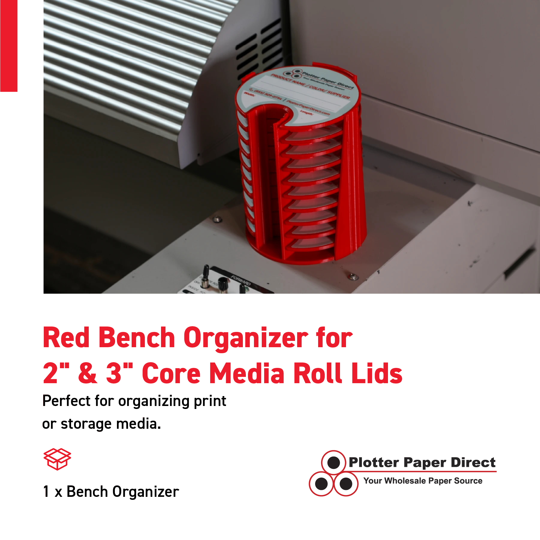 Red Bench Organizer for 2" & 3" Core Media Roll Lids – Durable & Space-Saving