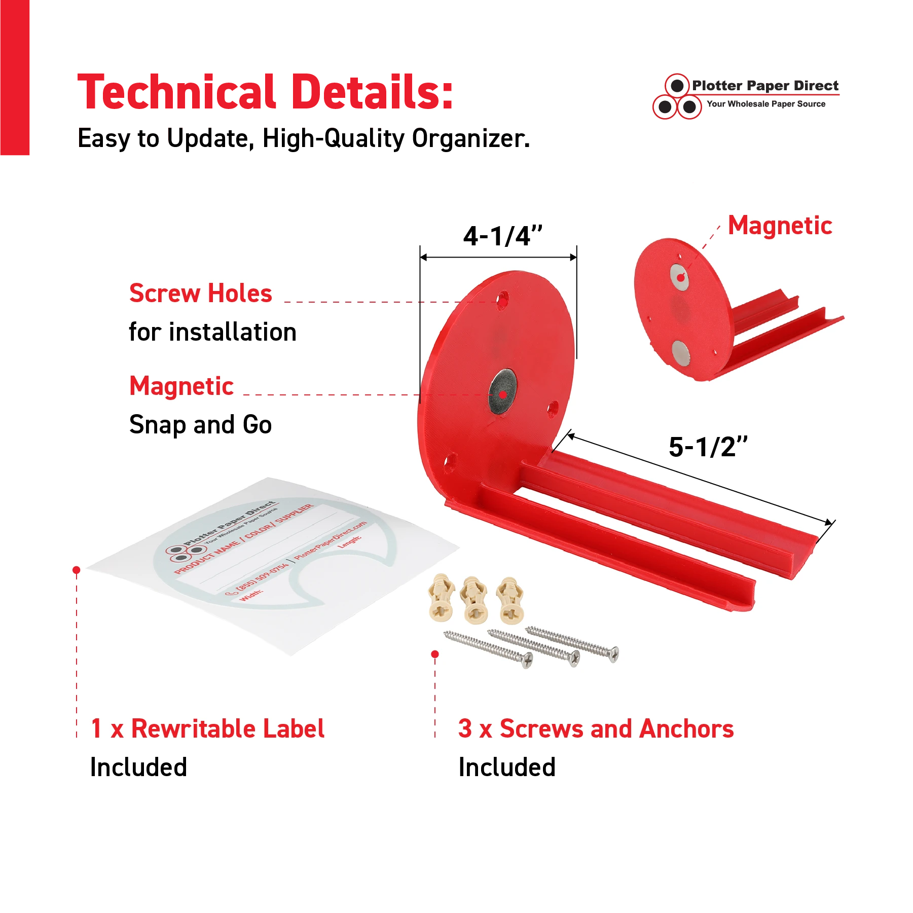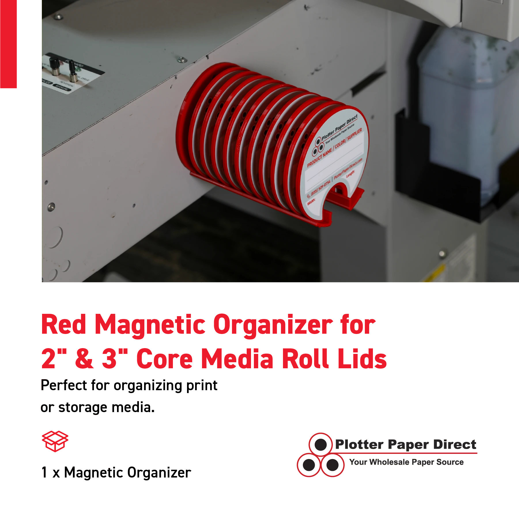 Red Magnetic Wall Organizer for 2" & 3" Core Media Roll Lids – Space-Saving Storage for Print Shops, Vinyl Roll Accessories, Durable & Easy to Mount