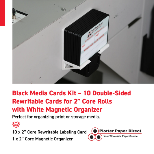 Black MediaCards Kit for Vinyl Roll Storage – 10 Writable Double-Sided Cards for 2" Core Rolls with White Magnetic Organizer – Label & Track Media Easily