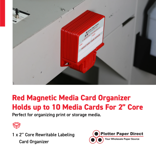 Red MediaCards for Vinyl Roll Storage – Writable Labeling Cards for 2" Core Rolls – Double-Sided Design with Fields for Product & Order Info