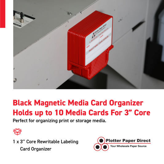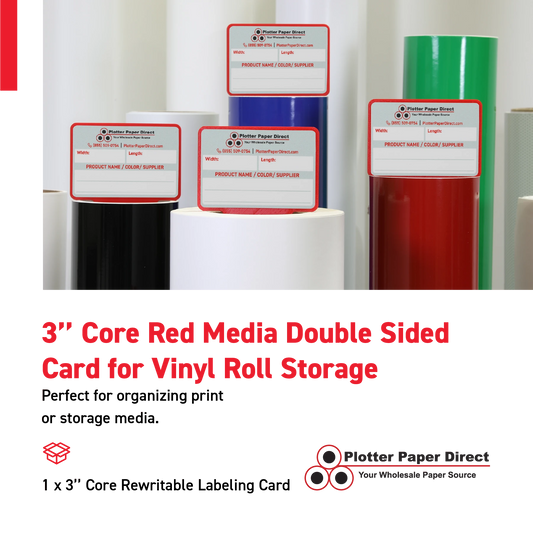 Red MediaCards for Vinyl Roll Storage – Writable Labeling Cards for 3" Core Rolls – Double-Sided Design with Fields for Product & Order Info