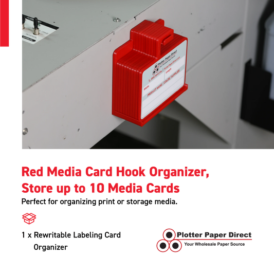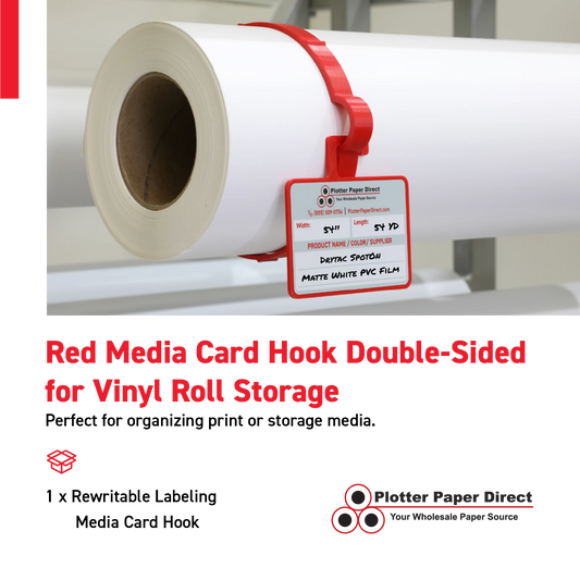 Red MediaCards Hook for Vinyl Roll Storage – Writable Labeling Cards for Vinyl Roll Clips – Double-Sided Design with Fields for Size, Color, Supplier & More