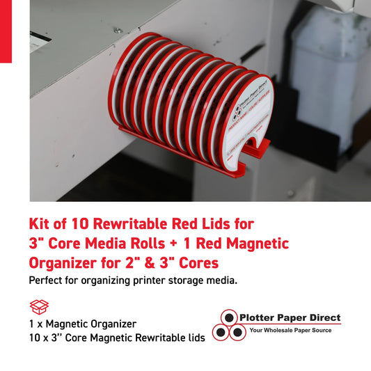 Kit of 10 Rewritable Red Lids for 3" Core Media Rolls + 1 Red Magnetic Wall Organizer for 2" & 3" Cores – Durable Storage Solution for Print & Sign Shops