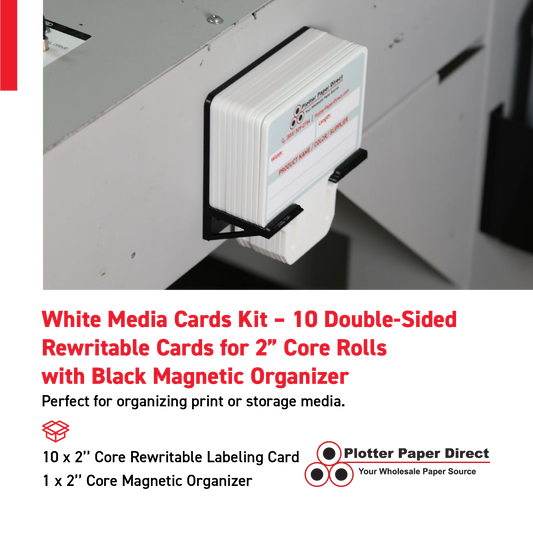White MediaCards Kit for Vinyl Roll Storage – 10 Writable Double-Sided Cards for 2" Core Rolls with Black Magnetic Organizer – Label & Track Media Easily