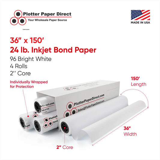 Vendor:Plotter Paper Direct(4) 36'' x 150' Rolls - 24# Coated Bond - 2'' CoreRegular price $136.82Regular priceUnit price / per$266.42Sale price $136.82Sale