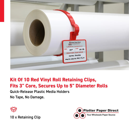 Kit Of 10 Red Vinyl Roll Retaining Clips, Quick-Release Plastic Media Holders, No Tape, No Damage, Fits 3" Core, Secures Up to 5" Diameter Rolls