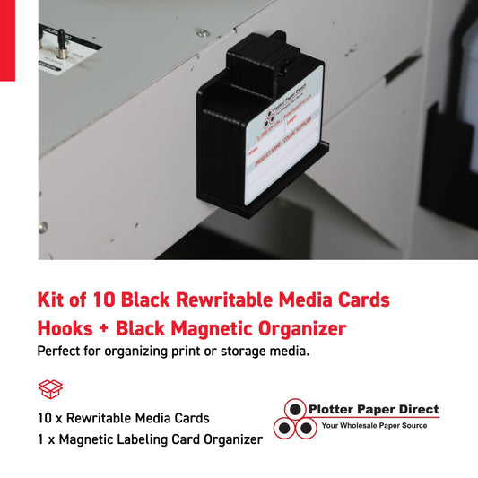 Kit of 10 Black Rewritable MediaCards Hooks + Black Magnetic Wall Organizer – Dry-Erase Labeling Kit for Vinyl Roll Storage in Print & Sign Shops