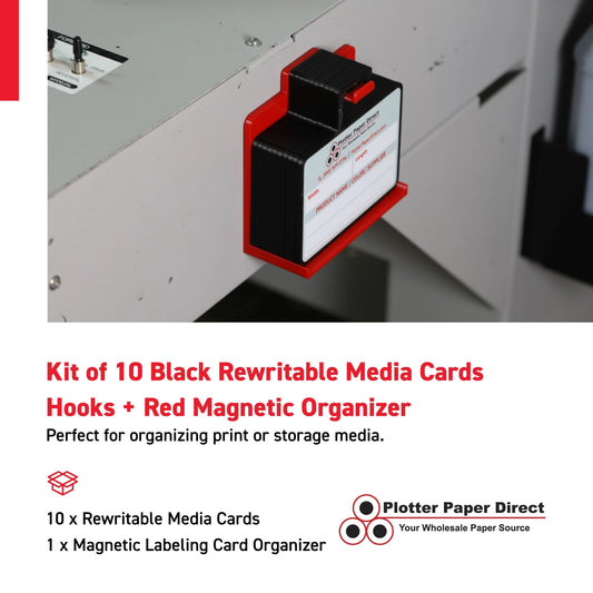 Kit of 10 Black Rewritable MediaCards Hooks + Red Magnetic Wall Organizer – Dry-Erase Labeling Kit for Vinyl Roll Storage in Print & Sign Shops