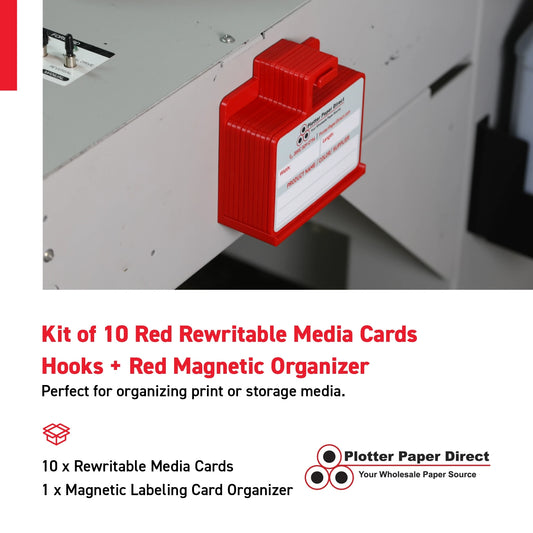 Kit of 10 Red Rewritable MediaCards Hooks + Red Magnetic Wall Organizer – Dry-Erase Labeling Kit for Vinyl Roll Storage in Print & Sign Shops