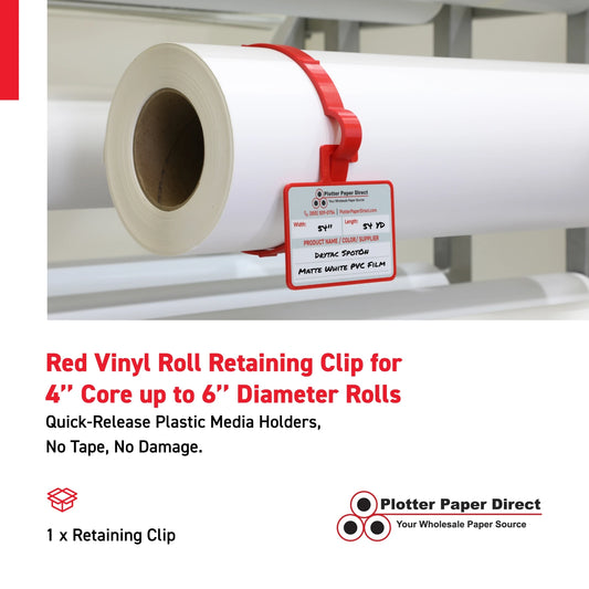 Red Vinyl Roll Retaining Clips, Quick-Release Plastic Media Holders, No Tape, No Damage, Fits 4" Core, Secures Up to 6" Diameter Rolls