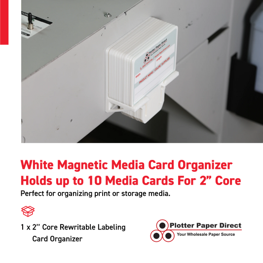White MediaCards Kit for Vinyl Roll Storage – 10 Writable Double-Sided Cards for 2" Core Rolls with White Magnetic Organizer – Label & Track Media Easily