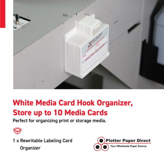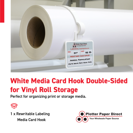 White MediaCards Hook for Vinyl Roll Storage – Writable Labeling Cards for Vinyl Roll Clips – Double-Sided Design with Fields for Size, Color, Supplier & More